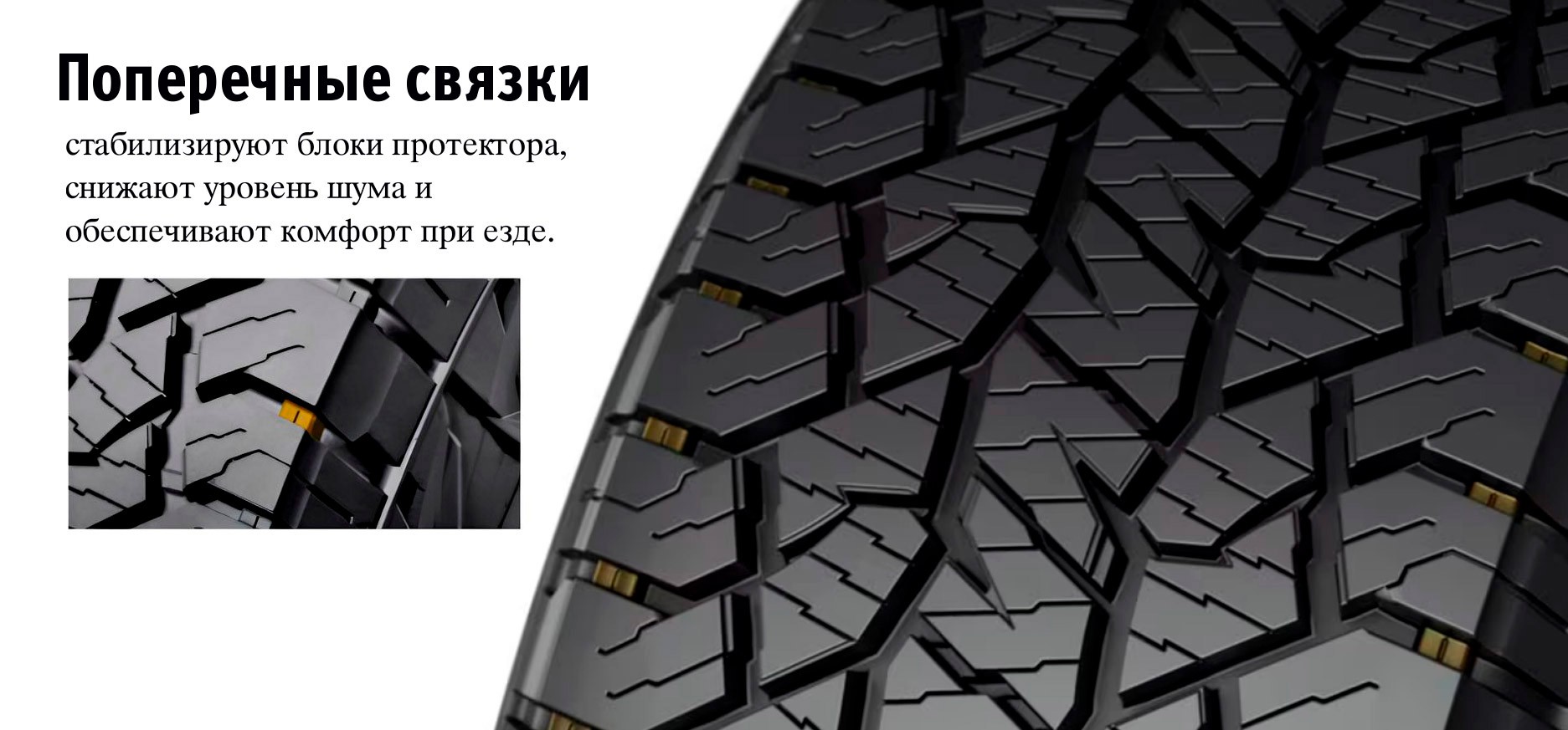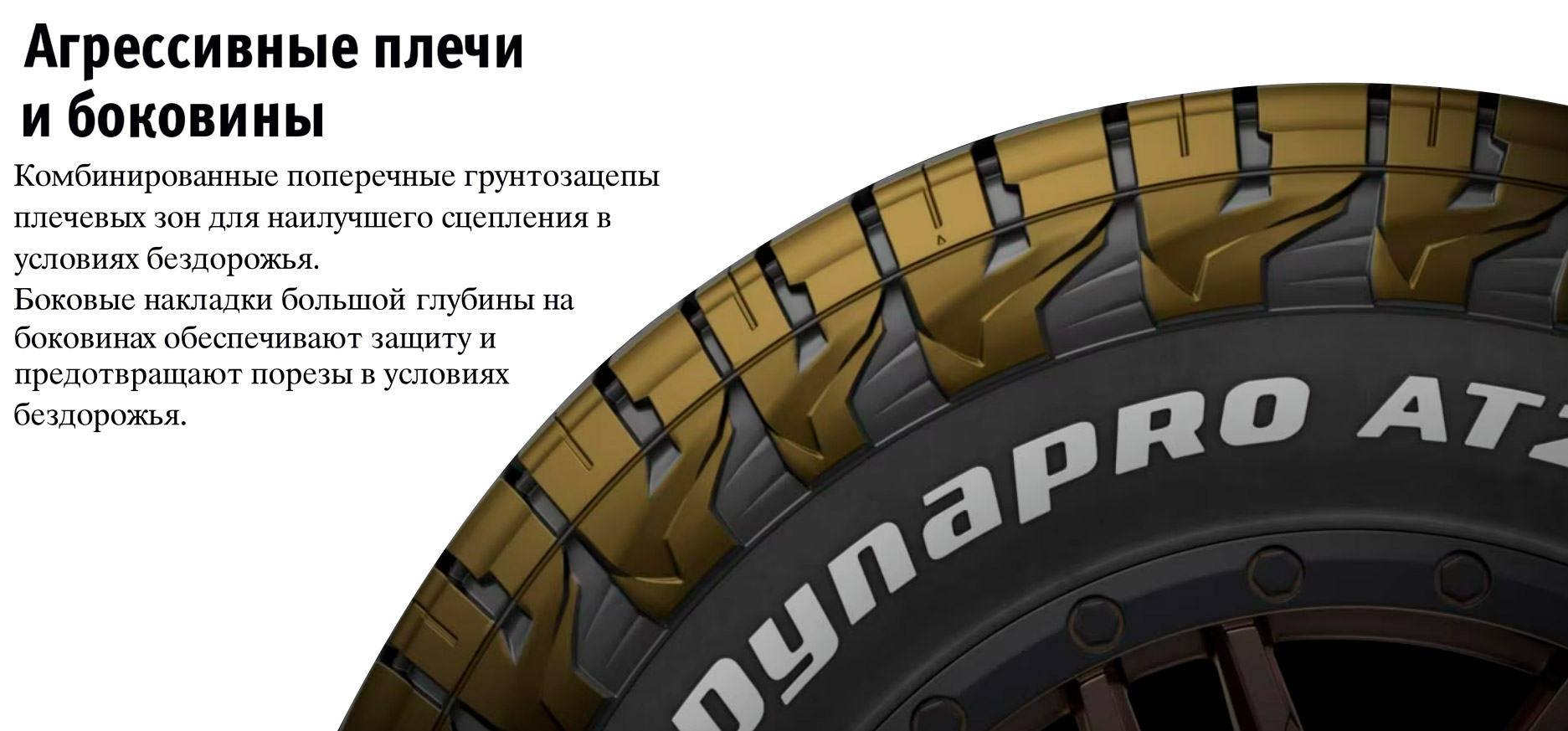 Несмотря на агрессивный протектор, шина Hankook Dynapro AT2 Xtreme RF12 разработана таким образом, чтобы минимизировать дорожный шум на шоссе, обеспечивая более комфортное вождение.