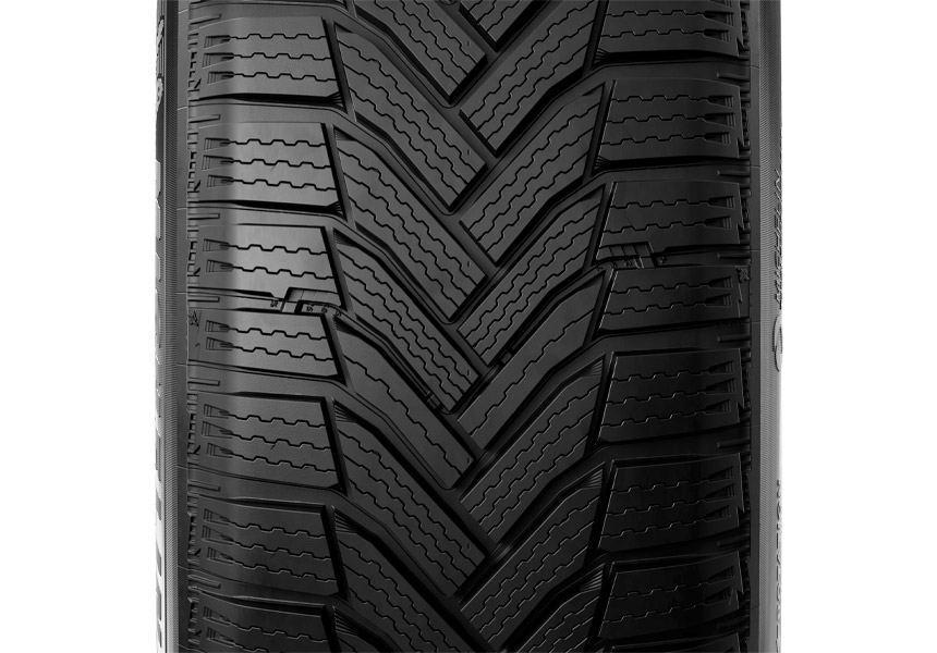 Многослойная структура протекторной части покрышки позволяет поддерживать превосходные сцепные характеристики на любом сроке службы. По мере истирания верхнего слоя меняется рисунок беговой дорожки, в частности форма ламелей, которые со временем расширяются. Таким образом обеспечивается прочный зацеп на зимних и мокрых покрытиях.