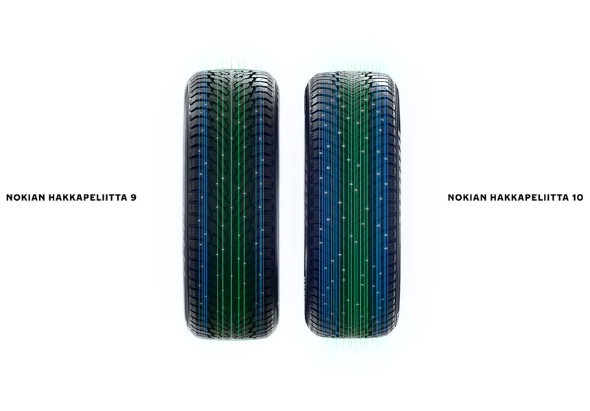 Протекторный рисунок шин Nokian Tyres Hakkapeliitta 10 EV имеет много 3D ламелей, которые делают стабильными управляемость и сцепление при маневрировании на снежном дорожном покрытии. Более жесткие блоки беговой части протектора обеспечивают отличную курсовую устойчивость и точность управления на чистом дорожном покрытии.