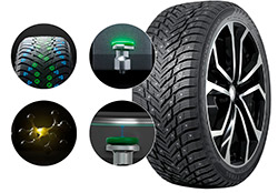 Высокий уровень безопасности обеспечивает не только двойная техника ошиповки, но и увеличение количества шипов. Каждый типоразмер шин имеет оптимальное расположение шипов.