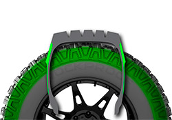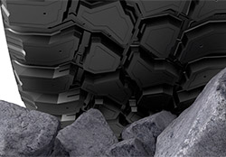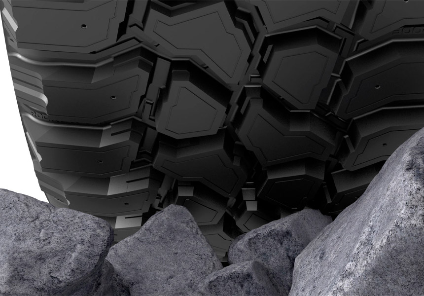 Прочная резиновая смесь разработана специально для экстремальных условий. Ее состав гарантирует защиту от повреждений и устойчивость на разной местности. Также боковины, выполненные с добавлением арамидного волокна, придают дополнительный запас прочности. Благодаря арамиду в составе боковин, шины способны выдерживать значительные нагрузки, сопротивляться боковым проколам и порезам, сохранять целостность при ударах и наезде на препятствия.